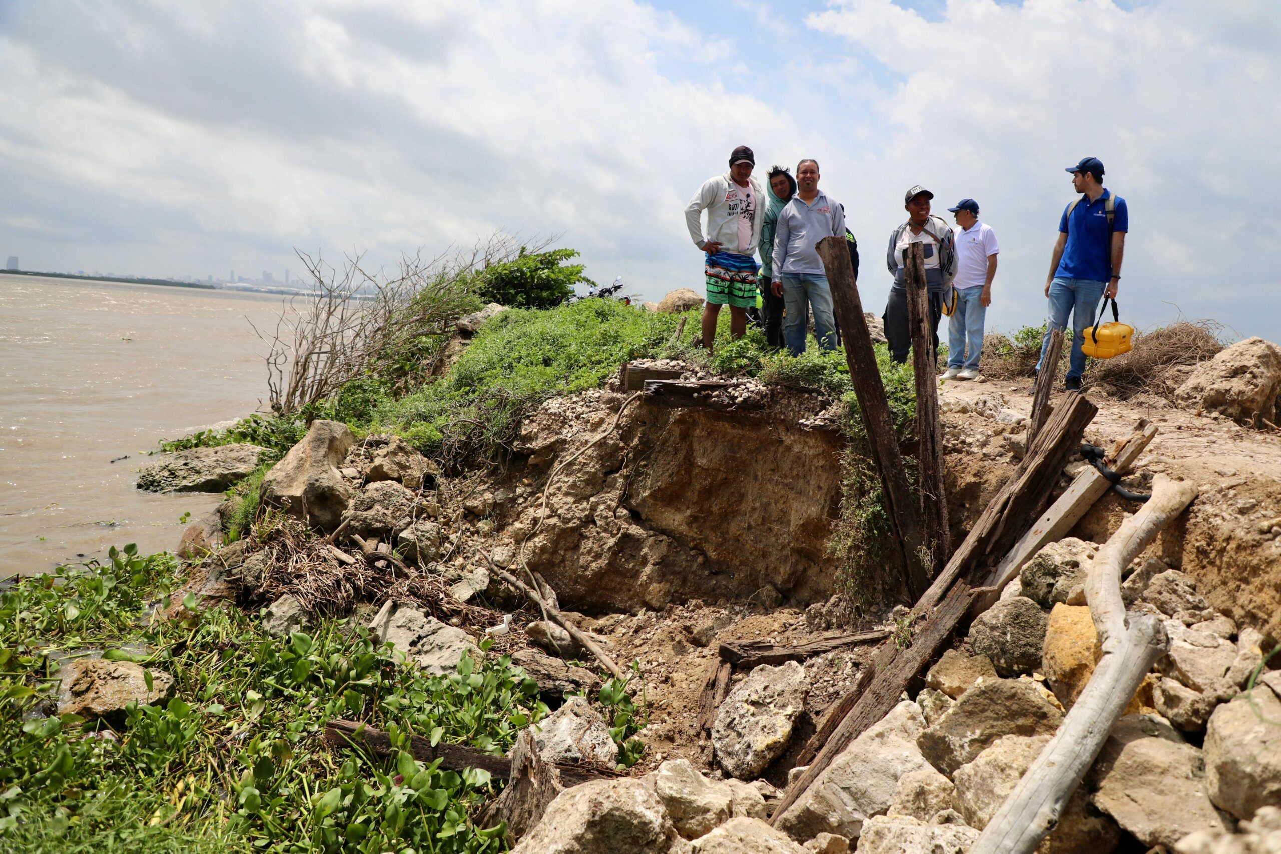 Rodeado de la comunidad del sector, el mandatario distrital expresó: “Esta estructura, como decía ahorita el ingeniero, hace muchos años no se le hace nada. Hace muchos años ni se le mira, pero yo sí he visto, y tengo que decirlo y tengo que darle la tranquilidad a Barranquilla y a tanto empleo que vive de esto, porque si se va un pedazo del tajamar se pierden miles y miles y miles de empleos, partiendo del puerto para acá”.