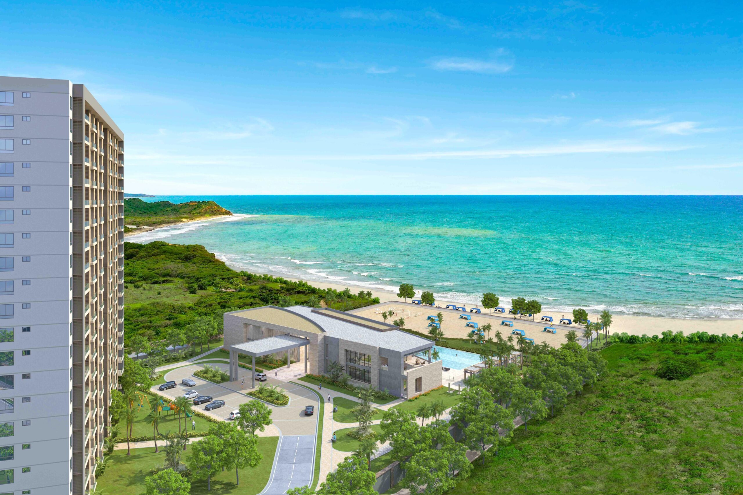 La primera incluye las torres Sirena del Mar y Estrella del Mar; la nueva etapa, Corales del Mar, amplía la oferta con apartamentos que mantienen la vista panorámica al Caribe y acceso a todas las amenidades del condominio.