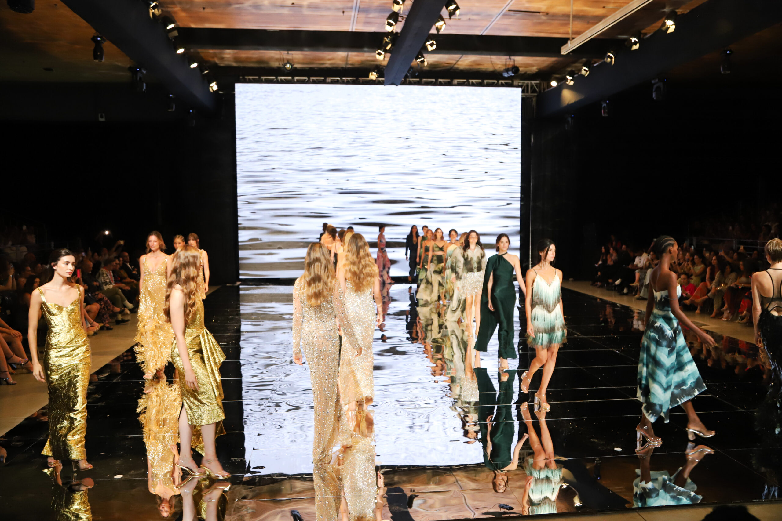 Noche en el Trópico: Este desfile, que rompió con todos los esquemas,  ya que fue una exhibición de moda colaborativa en La Troja, el templo de la salsa en Barranquilla. Aquí el protagonismo fue para la sinergia entre marcas como Anthias de Marco Emiliani, Paula Jassir, EFECÉ, Laura Cepeda, Atalí Jewelry, Pietre Perline y Artesanías del Atlántico, con textiles innovadores, estampados tropicales, mucho brillos y una fiesta de texturas.