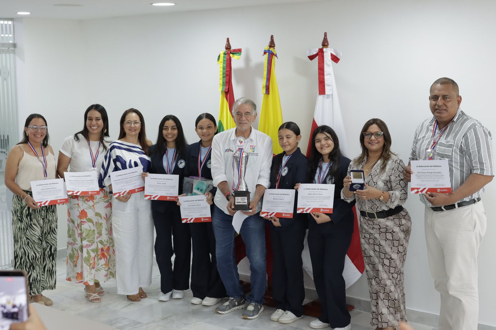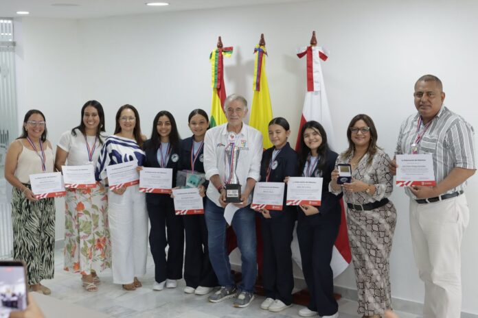En un acto realizado en la Sala de Juntas de la Gobernación del Atlántico, el mandatario recibió a la rectora, docentes y estudiantes del semillero de investigación que representó al departamento, entregándoles una Mención de Honor por su valioso aporte a la innovación educativa y al desarrollo sostenible.
