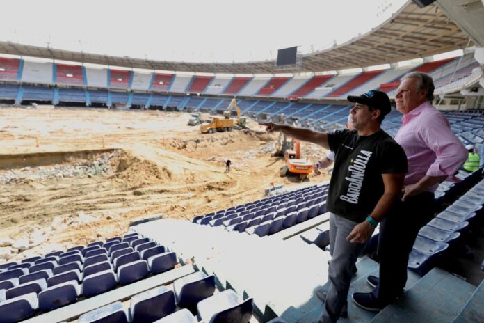 El alcalde de Barranquilla Alejandro Char y el presidente de la Federación Colombiana de Fútbol, Ramón Jesurun, visitaron las obras de ampliación y remodelación del estadio Metropolitano Roberto Meléndez.