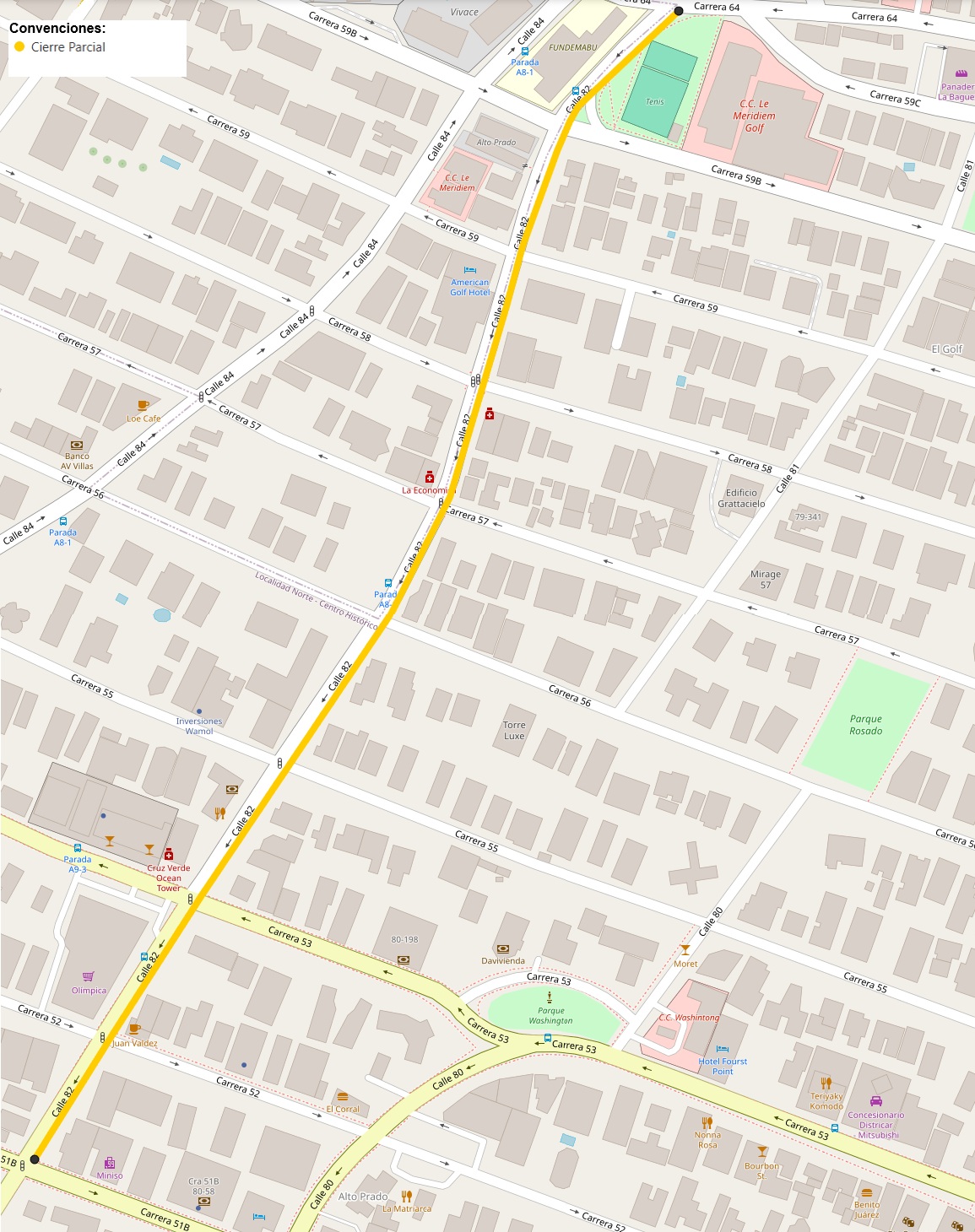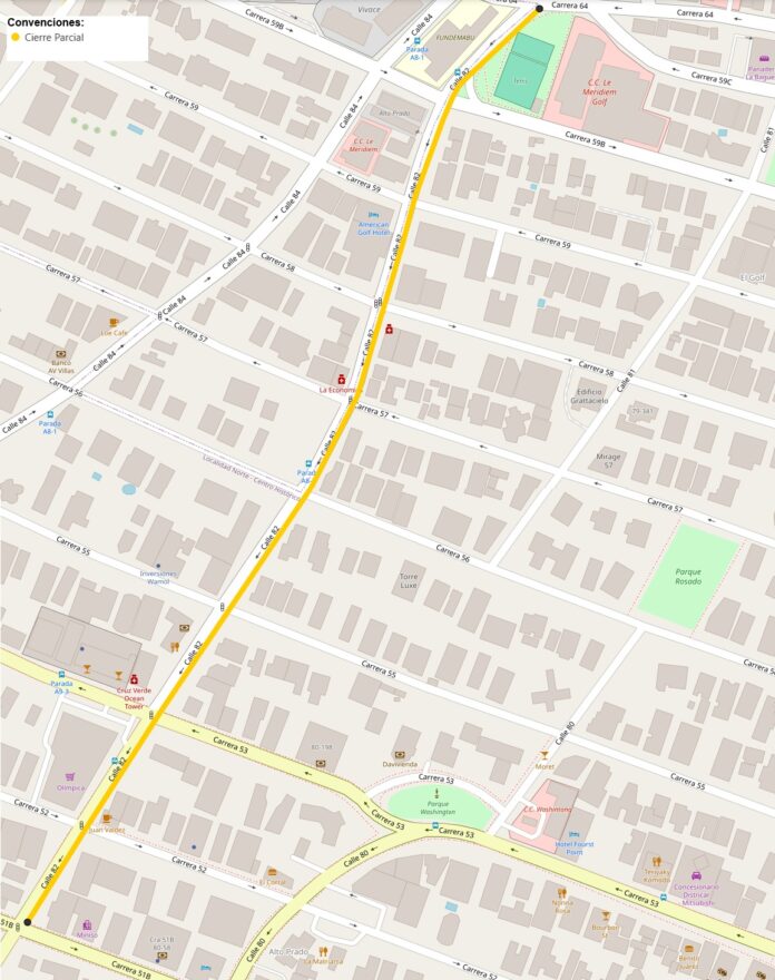 La Secretaría de Tránsito y Seguridad Vial informa a la ciudadanía que por la construcción de obras de pavimento, ampliación y reconstrucción vial se ha programado el cierre parcial de un carril de la calle 82 entre carreras 51B y 64, desde hoy 4 de febrero hasta el 2 de marzo.